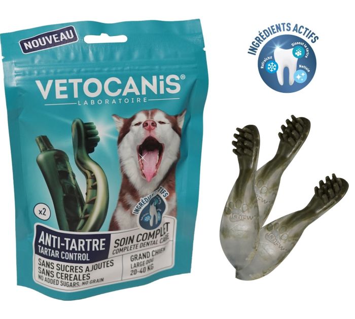 Vétocanis Anti-Tattar maius aitab ära hoida hambakivi kogunemist teie väikesele koerale, pakkudes talle lõbusust. Naast on nii halva hingeõhu kui ka potentsiaalselt tõsiste infektsioonide põhjus. Tänu uuenduslikule koostisele, mis sisaldab ensüümikompleksi ja patenteeritud hambaharja kuju, takistab see maius hambakivi teket. See põhineb looduslikel koostisosadel.